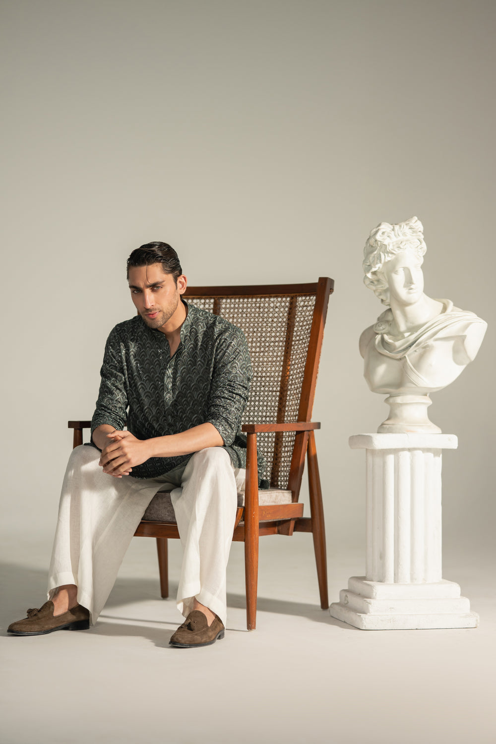 Designed for evening gatherings, formal Iftars, and refined Eid celebrations, Obsidian Arc is made for the Kingsman who commands attention through elegance rather than excess.