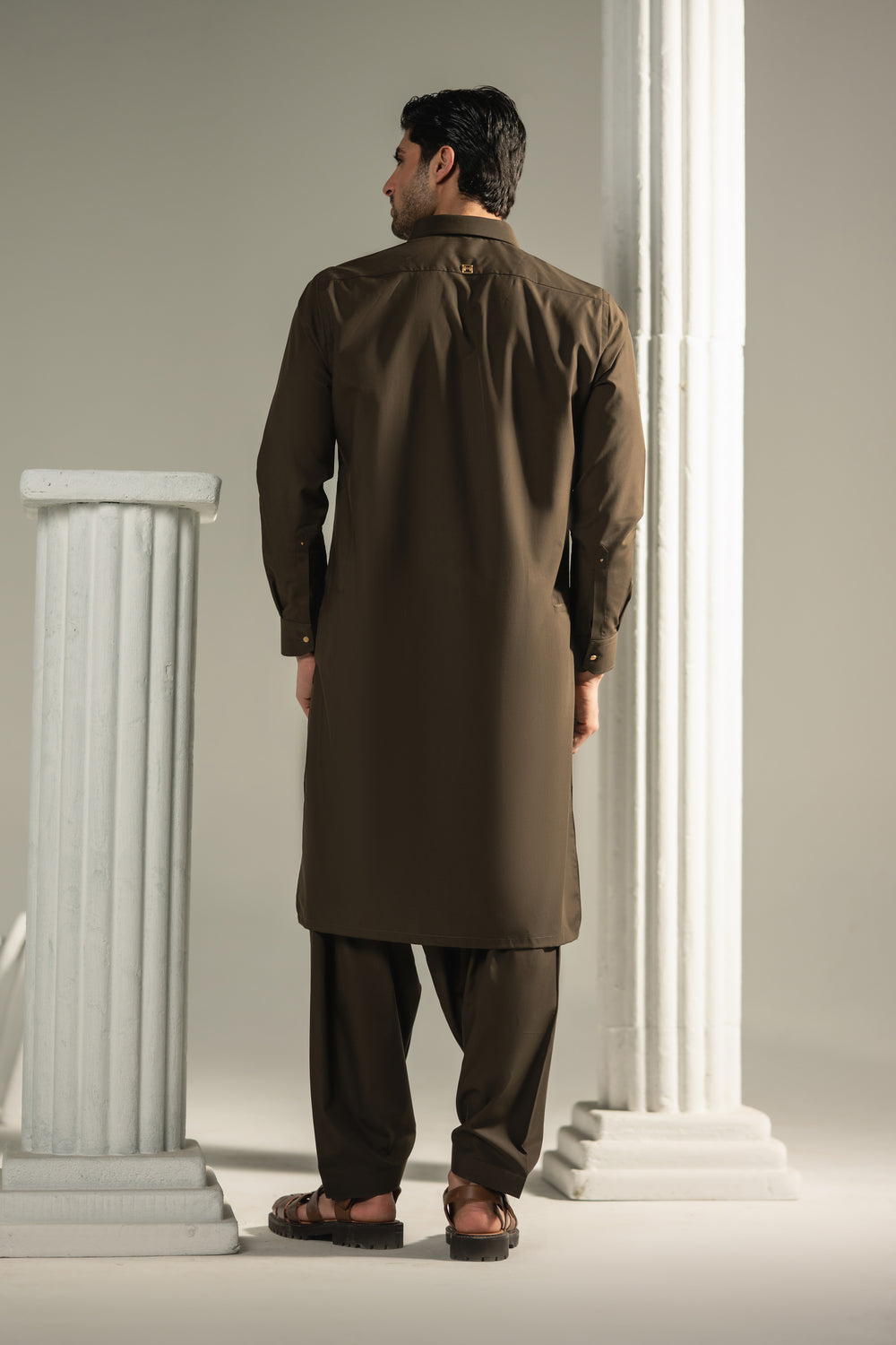 Rooted in strength and refined in execution, the Rayyan Shalwar Kameez is tailored in a rich imperial umber tone that embodies confidence and quiet authority. The deep earthy brown reflects warmth and depth, making it a perfect choice for Ramadan evenings and sophisticated Eid gatherings.
